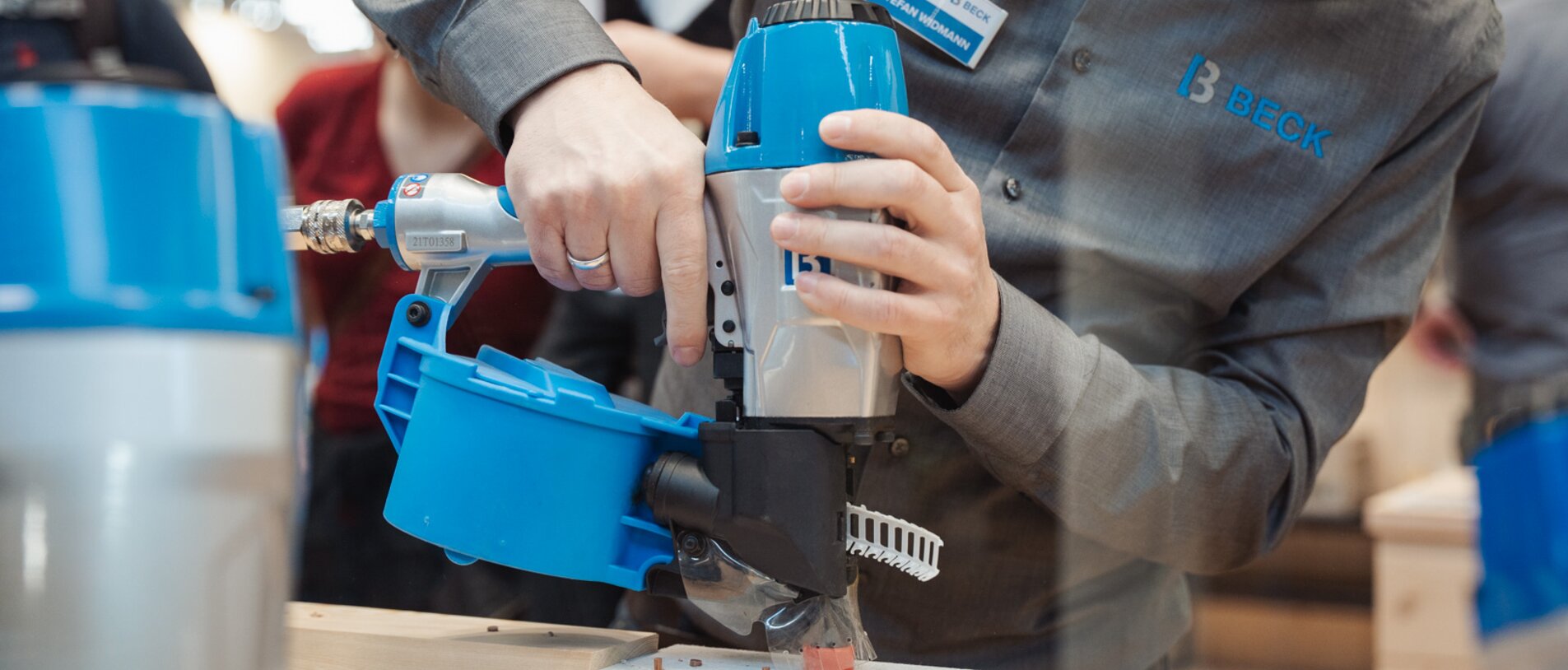 Entdecken Sie hier alle Informationen zu unserem neuen BECK Akku Streifennagler. Kabellose Freiheit ohne Pneumatikanschluss.