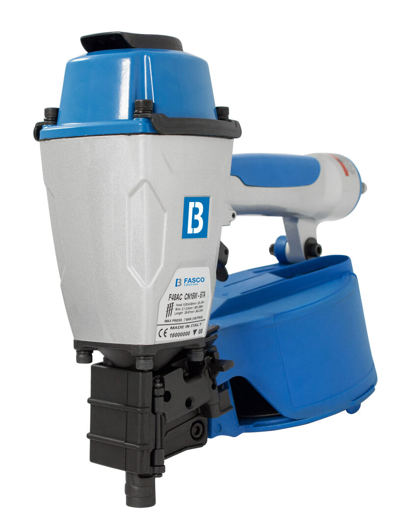 Excellent ergonomics and tool balance. The FASCO® F48AC CN15W-57A is a powerful nailer for 15° wire collated coil nails with a high impact engineered plastic magazine. The rubber comfort grip ensures non-slip handling and reduces vibrations and fatigue.