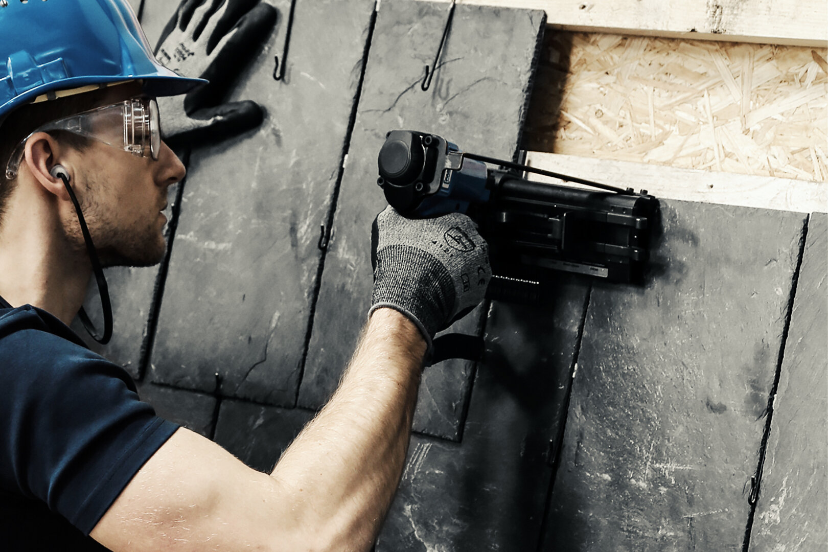 The slate hook system has been specifically designed for slate roof installation. The use of the new Slate Hook Nailer with collated roofing hooks represents the fastest, safest and most efficient slate shingle installation method currently available. The one-handed operation makes working on steep pitch roofs easier and safer.