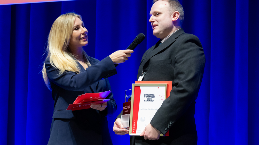 For ten years, the Austrian Association for Quality Assurance (Österreichische Vereinigung für Qualitätssicherung | ÖVQ) and Quality Austria have been awarding the Quality Champion distinction. This honor recognizes exceptional commitment and innovative solutions in the fields of quality management, environment, safety, sustainability, digitalization, and Industry 4.0. Year after year, the award raises awareness for quality and highlights outstanding work – because excellence deserves special recognition.