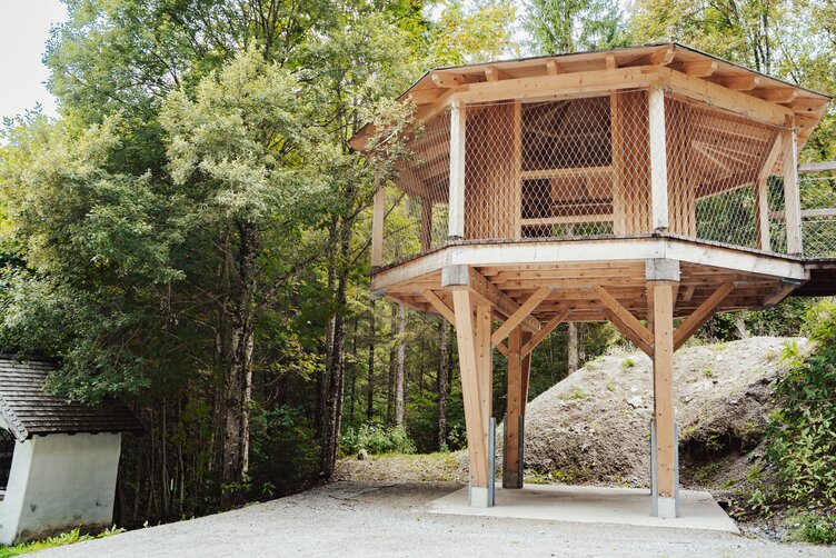Fast and efficient work with LIGNOLOC® wooden nails: In Bad Leogang, Austria, students from the Kuchl College of Wood Technology built a barrier-free pavilion for the social institution Badhaus.