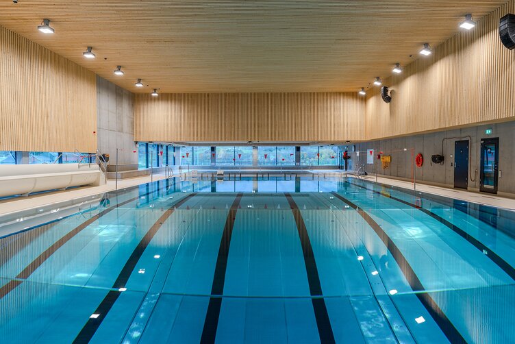 For the wall and ceiling cladding of the new swimming hall, LIGNOLOC® wooden nails were used – the innovative, corrosion-free fastening solution for humid environments.